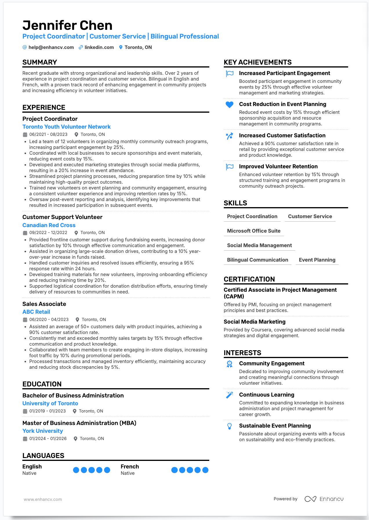 | Clean, traditional formatting suitable for most industries. | Not ideal for senior-level or complex career histories. |