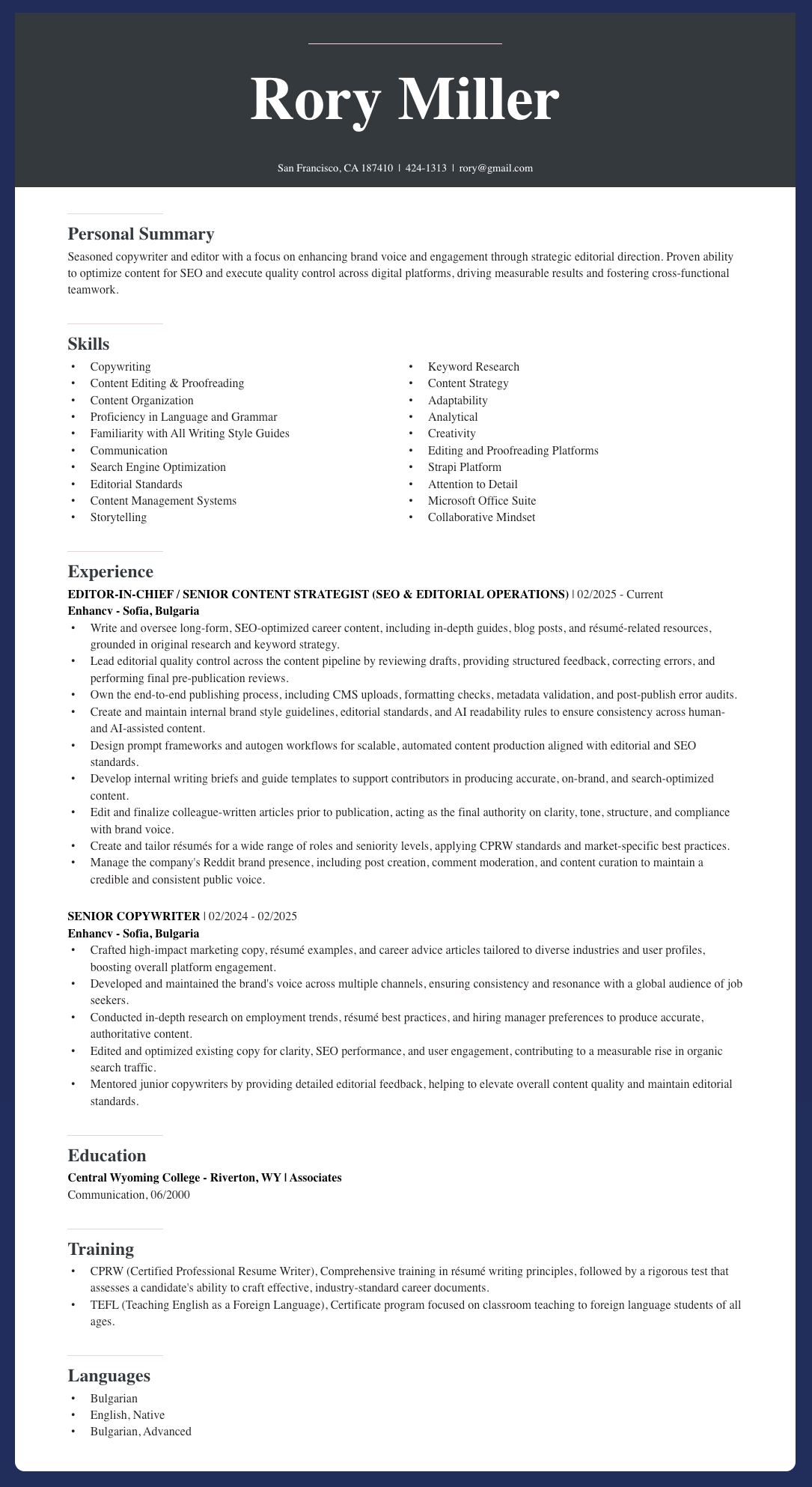 Enhancv focuses on flexibility and speed, offering a universal entry point for professionals at all career stages.