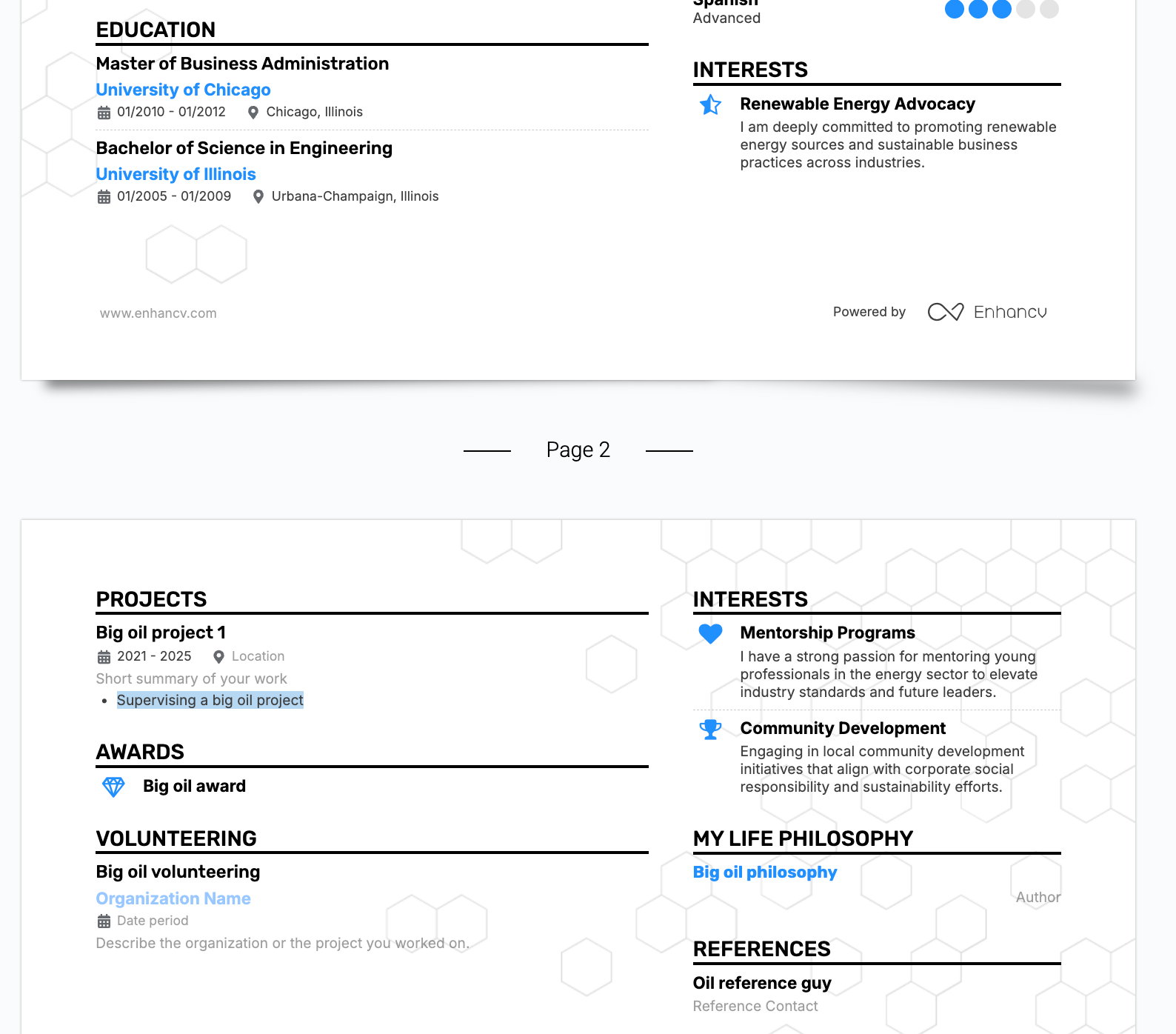 - The builder re-maps content automatically: You can’t manually resize margins, move individual sections outside of the preset order, or adjust the exact line spacing of a single bullet point.
