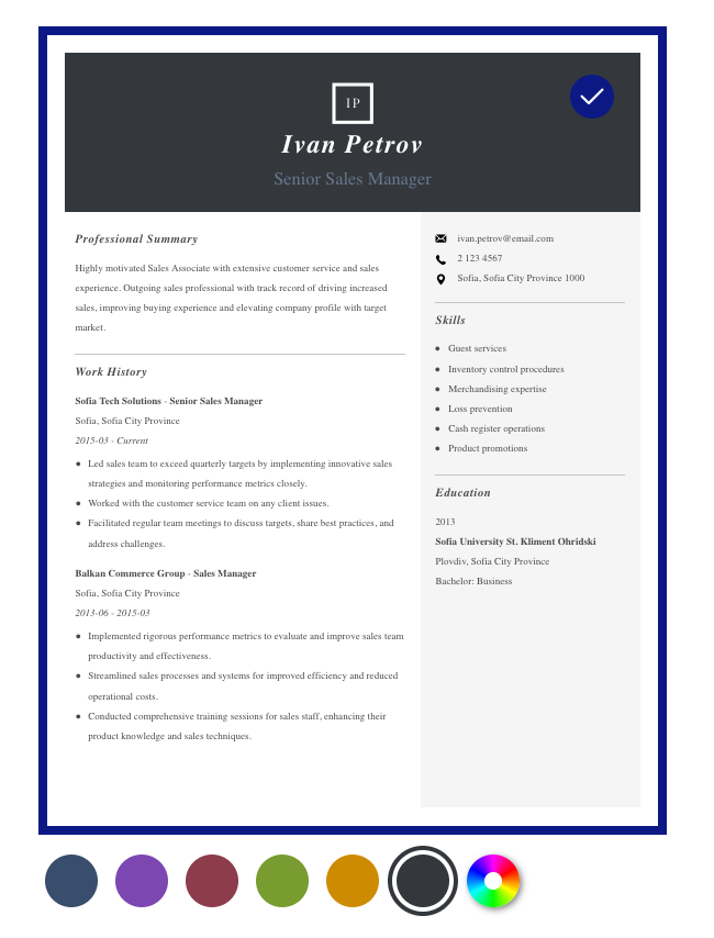 | Skills | Offers a comprehensive list of skills that match the role. Recommends having between 6 and 12 skills included in the resume. |