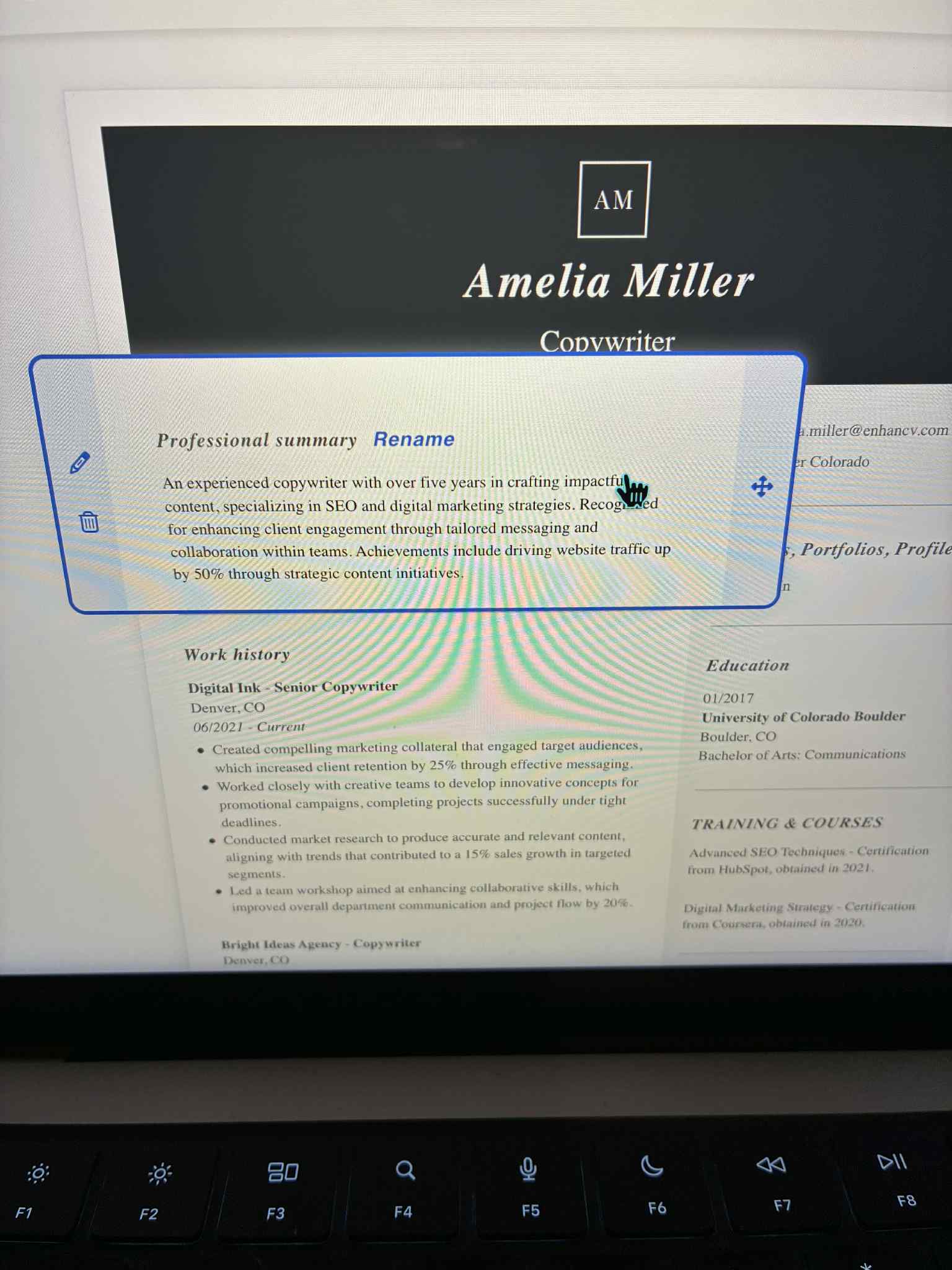You can also add and rearrange resume sectioning, meaning the template you choose doesn’t lock you into a rigid content structure. This is a major green flag. It gives you lots of tailoring and customization freedom.