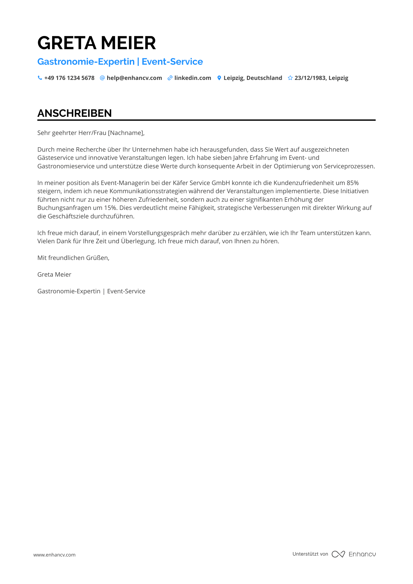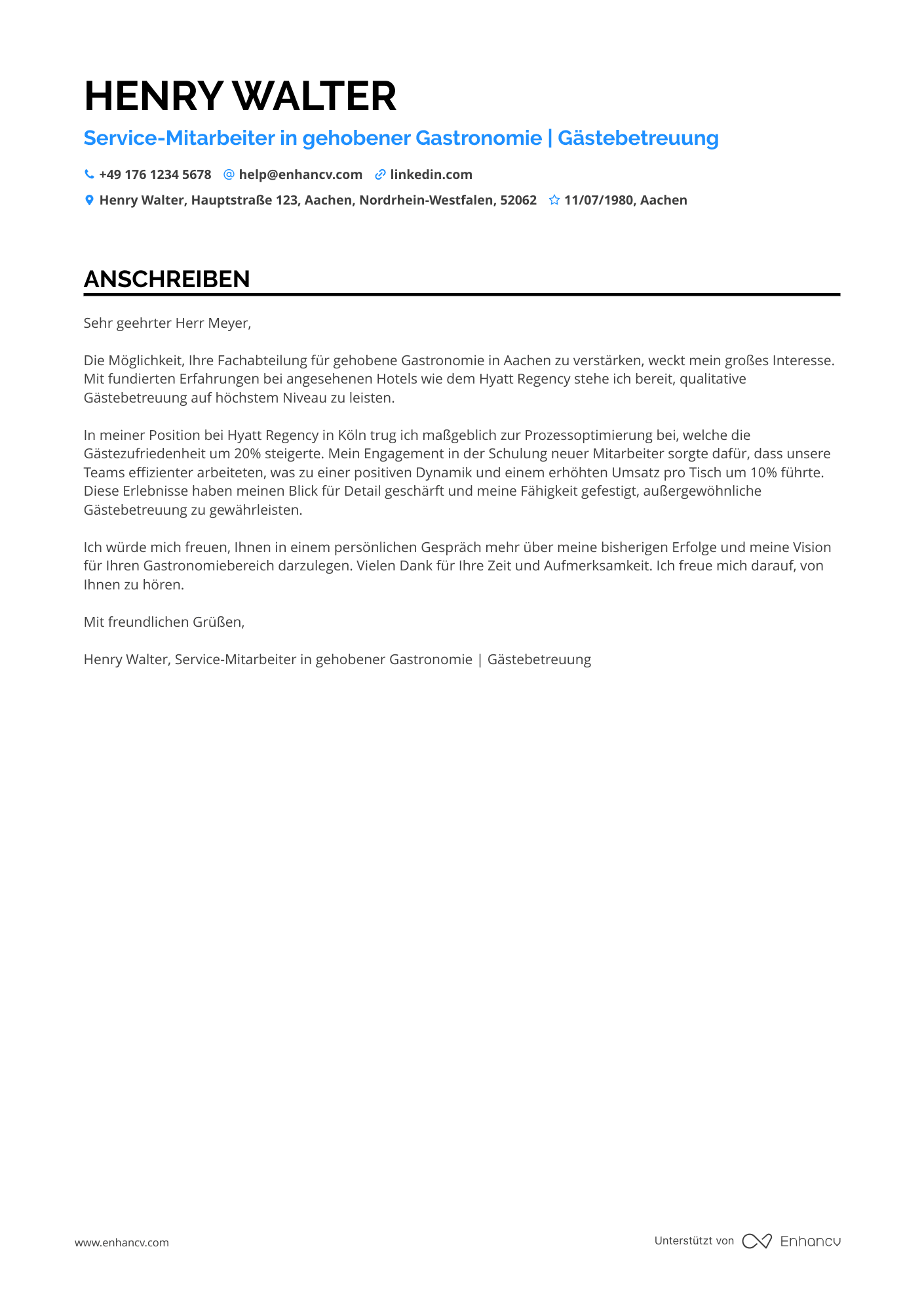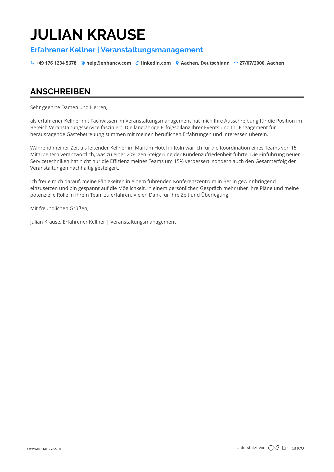 Anschreiben-Beispiele für kellner