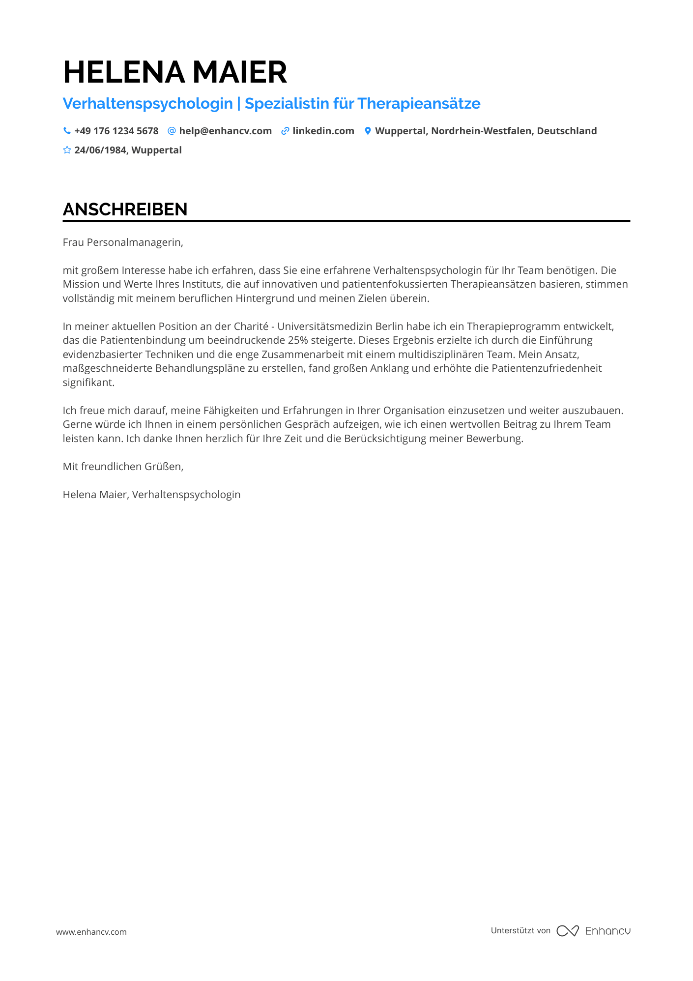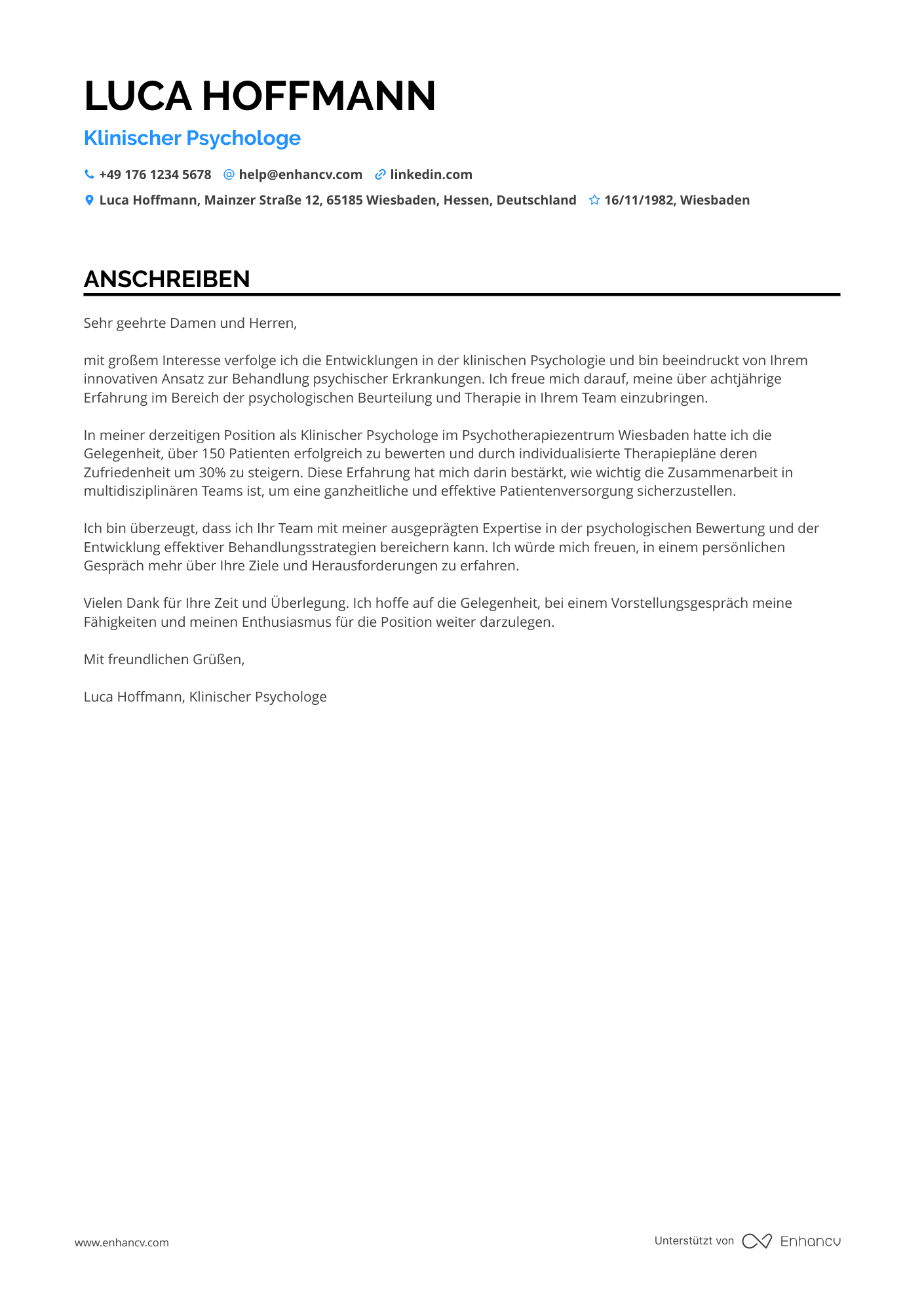 Anschreiben-Beispiele für psychologe