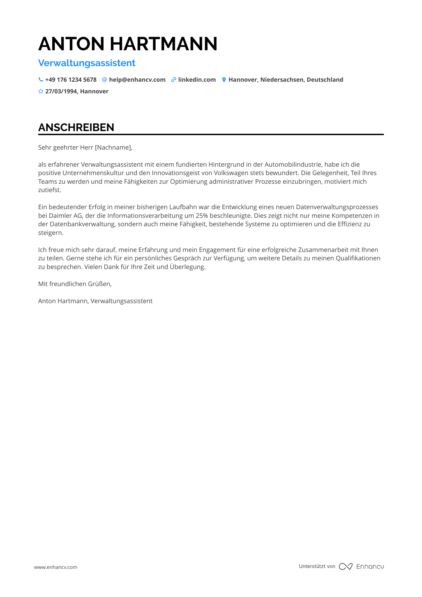 Anschreiben-Beispiele für verwaltungsassistent