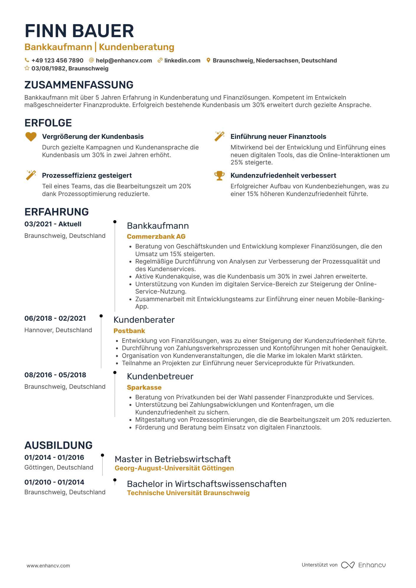 Lebenslauf als Bankkaufmann in der Finanzplanung