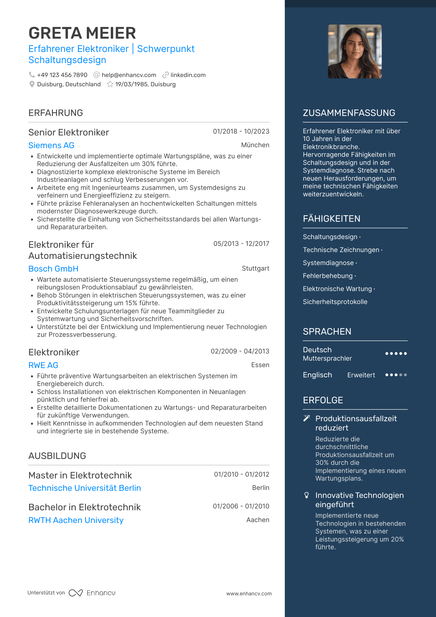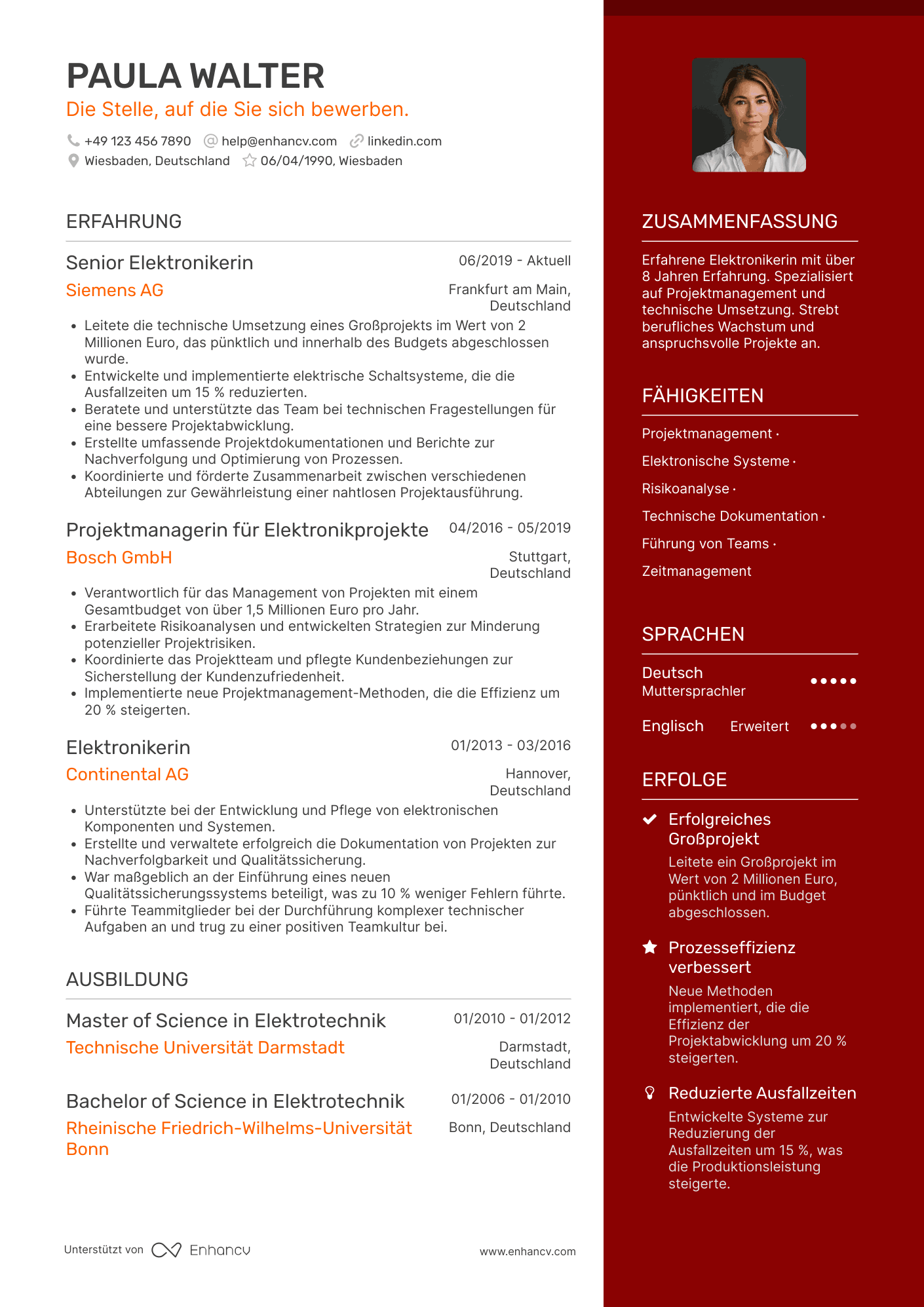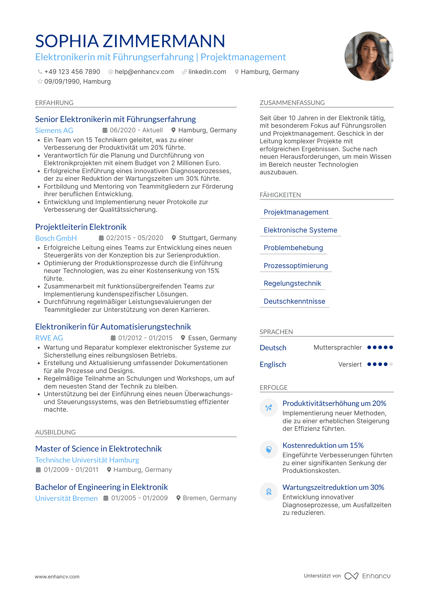 Lebenslauf als Elektroniker mit Projektmanagementerfahrung