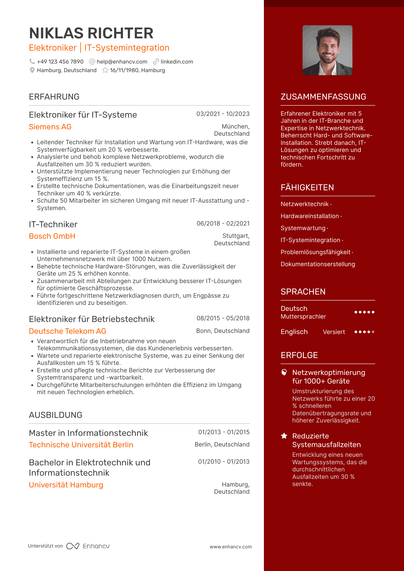 Lebenslauf als Elektroniker für Informations- und Systemtechnik