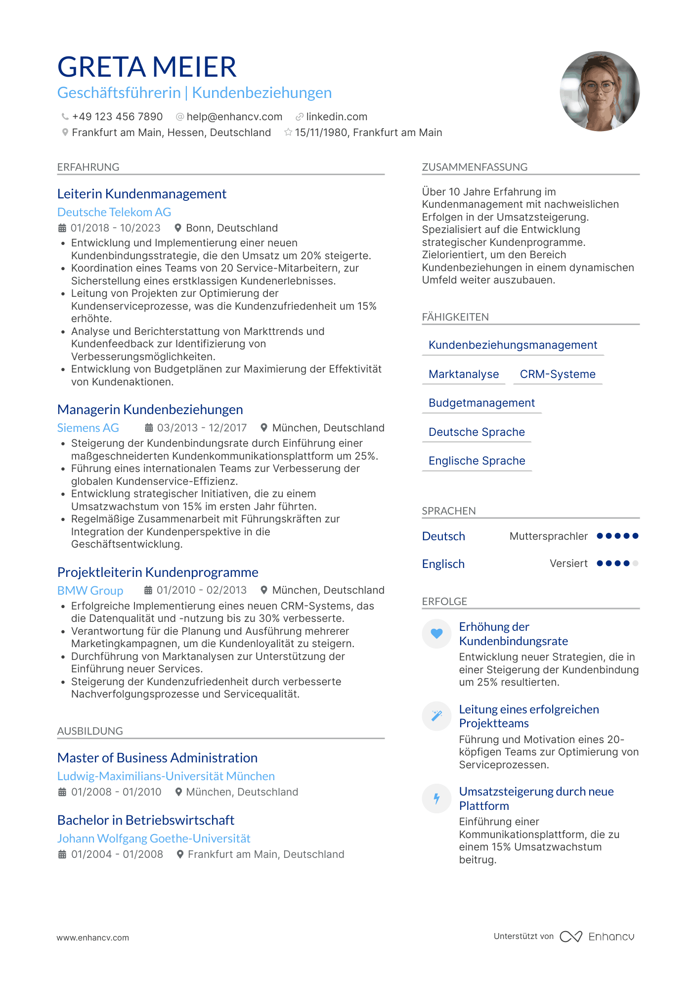 Lebenslauf als Geschäftsführer für Kundenbeziehungen