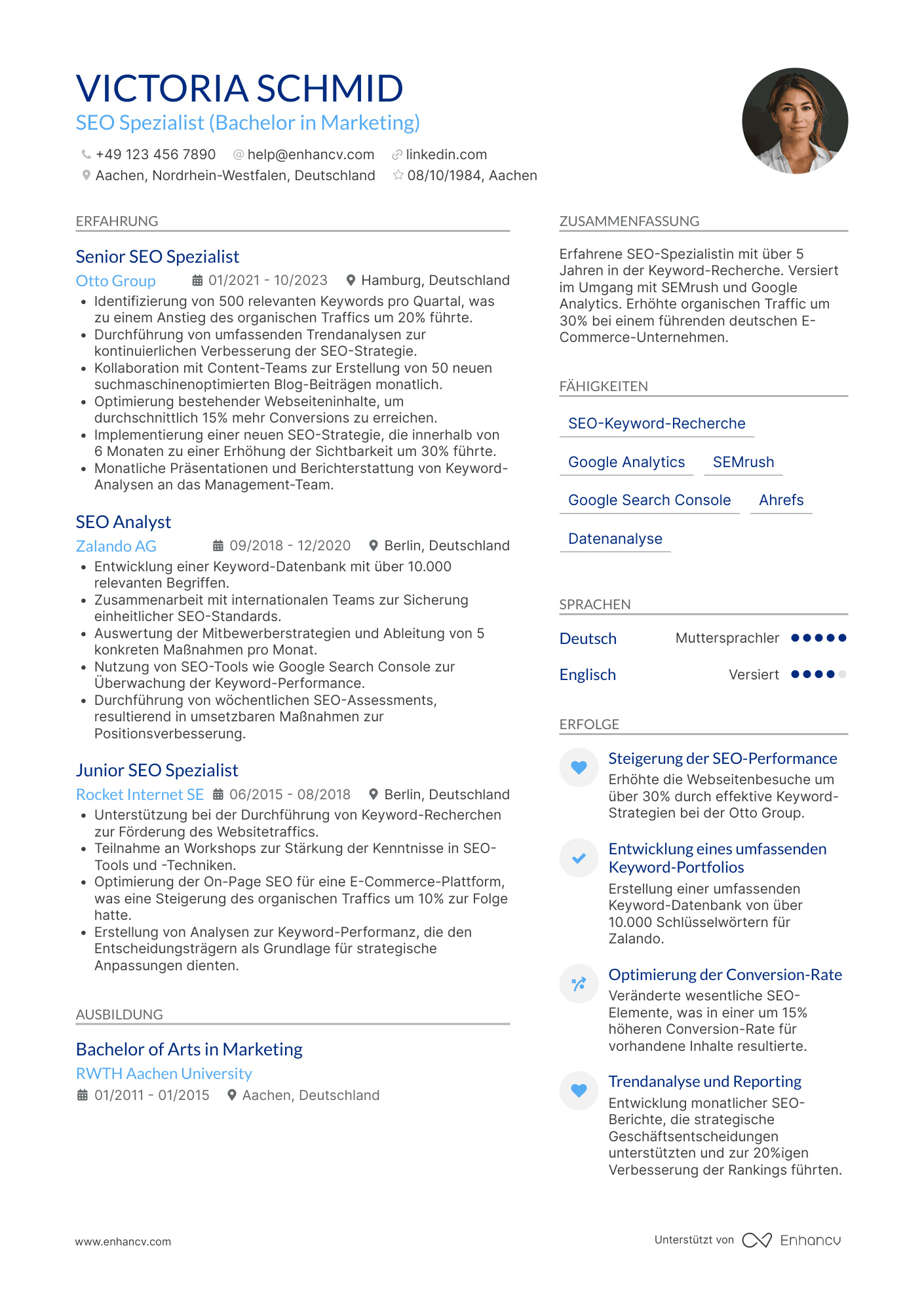 Lebenslauf als SEO Spezialist mit 5 Jahren Erfahrung