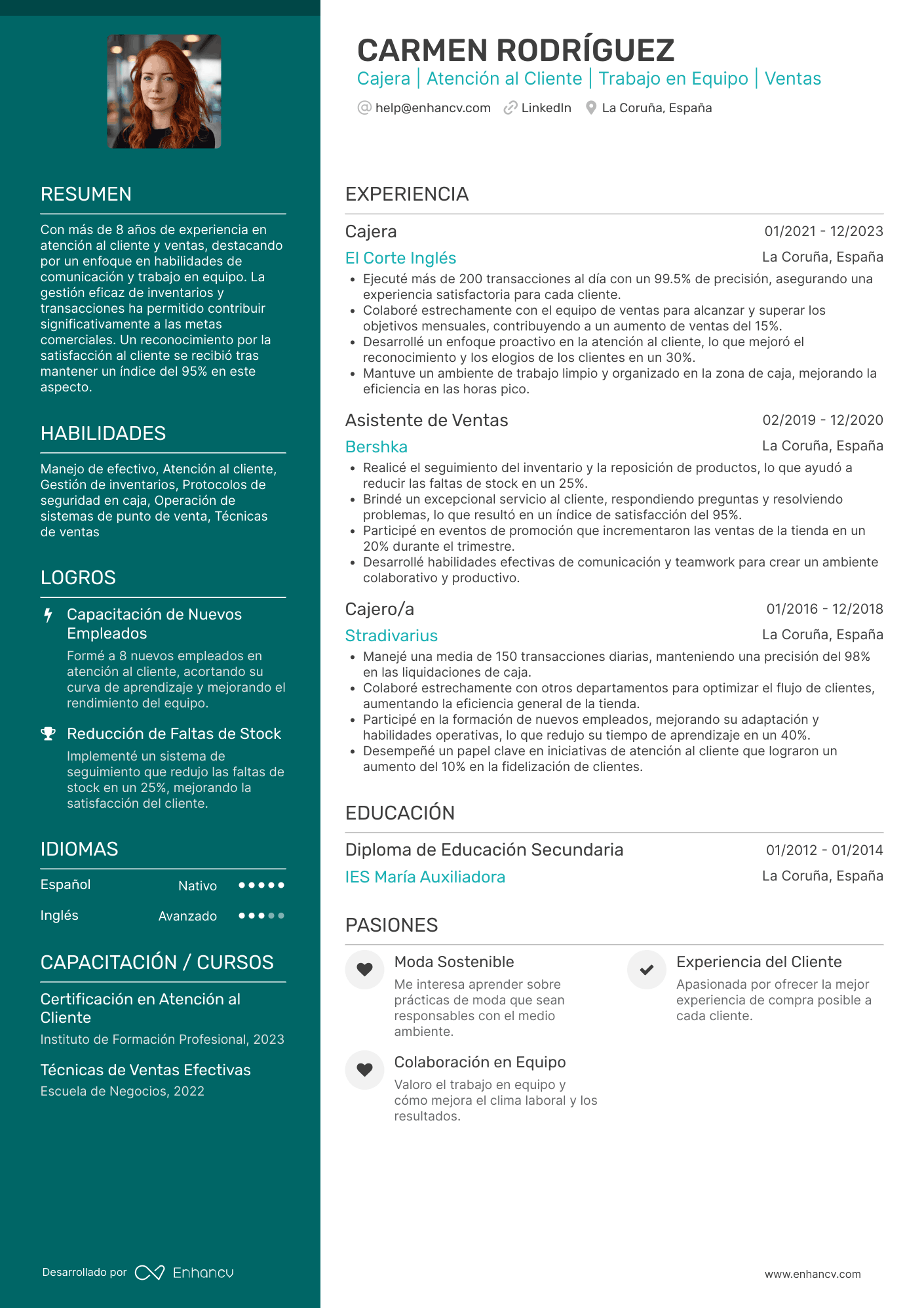 La experiencia laboral del CV es la sección más importante para recursos humanos de Inditex. Es necesario que, en cada experiencia, menciones tus funciones más importantes, los resultados concretos que hayas obtenido y algunas situaciones reales que demuestren tus capacidades clave. Prioriza lo que tenga relación directa con moda, ventas, atención al cliente o reposición.
