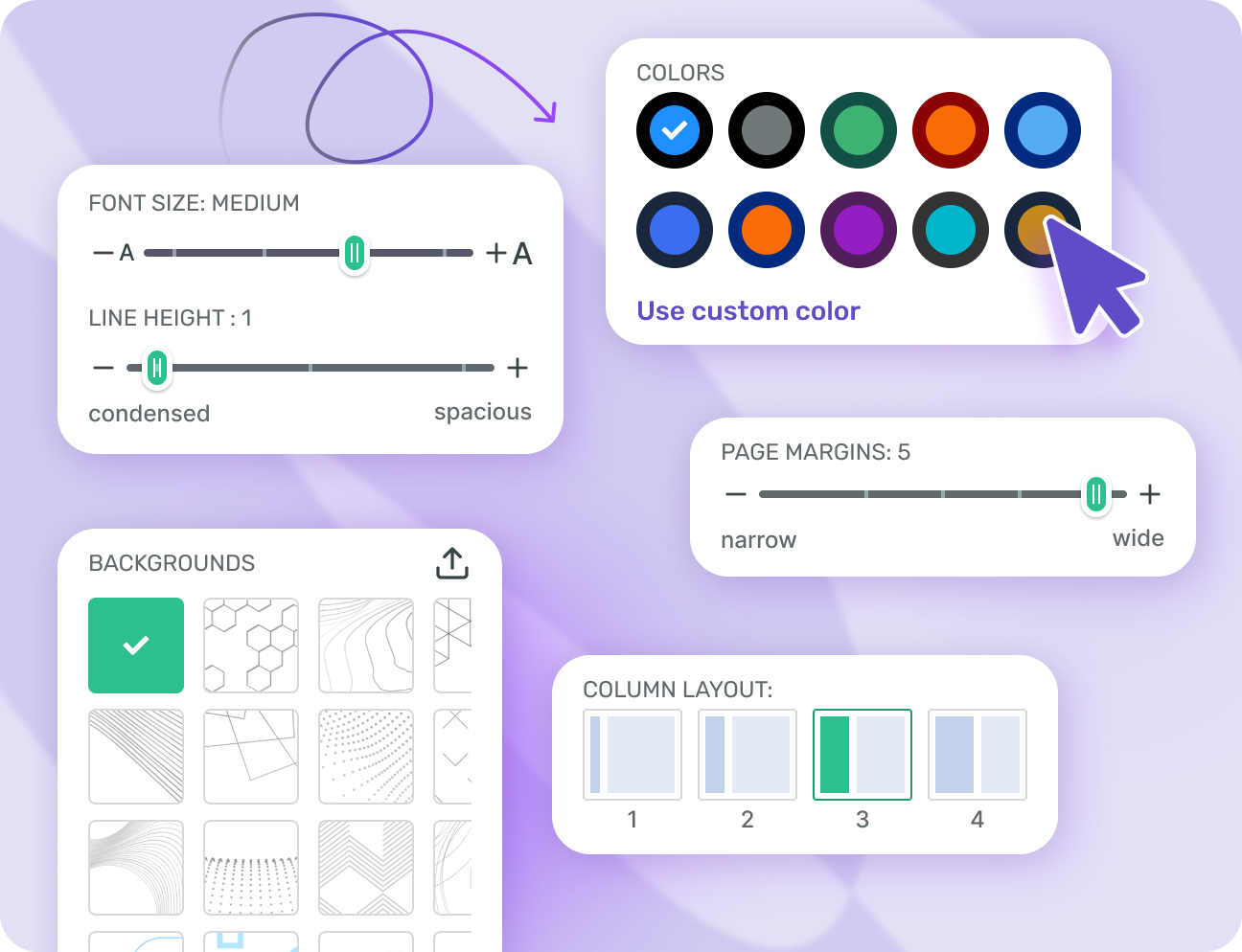 Let your resume reflect your professionalism and personality with professionally made templates, easy-to-use text formatting and layouts, subtle backgrounds, and recruiter-approved fonts that ensure readability.