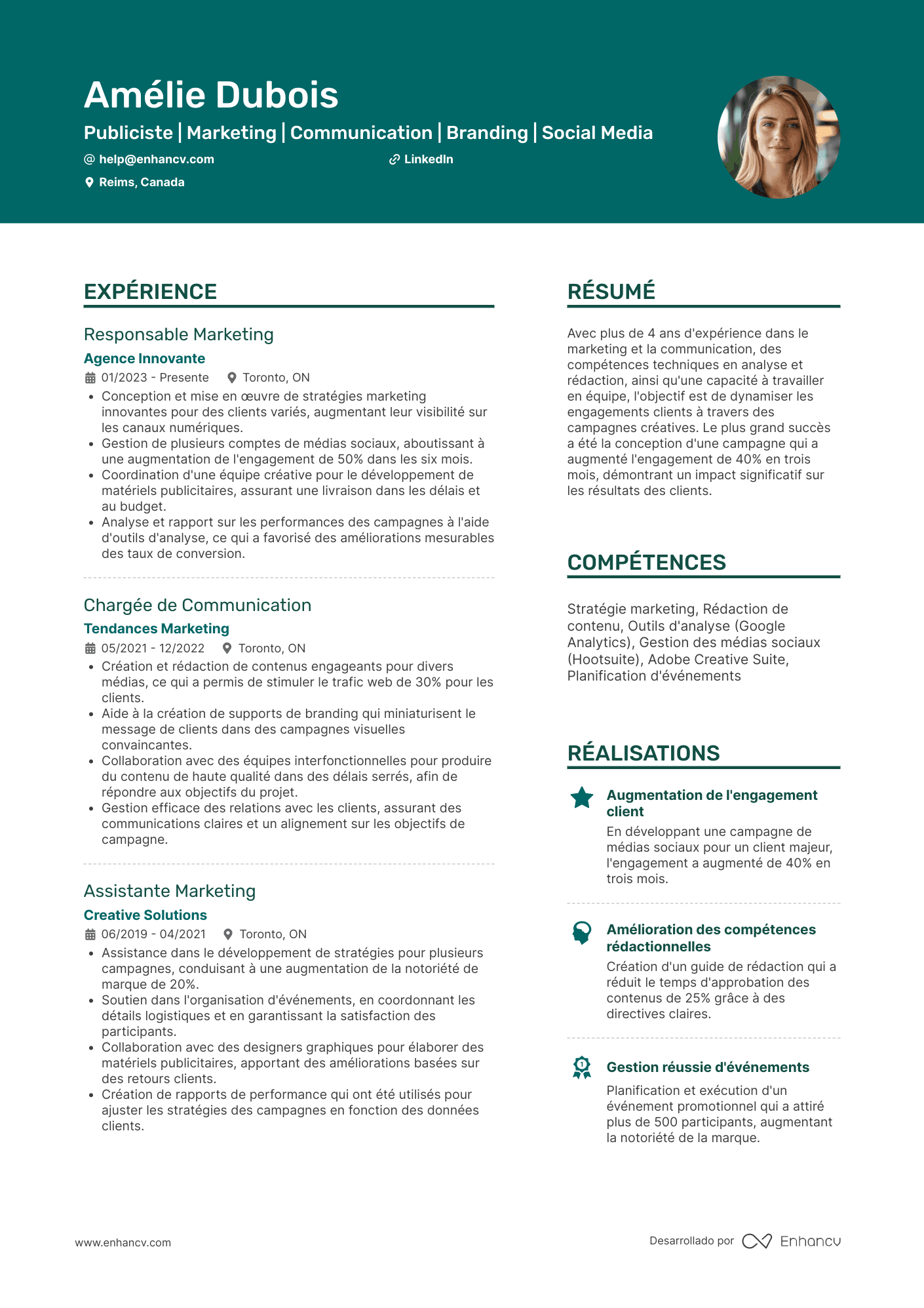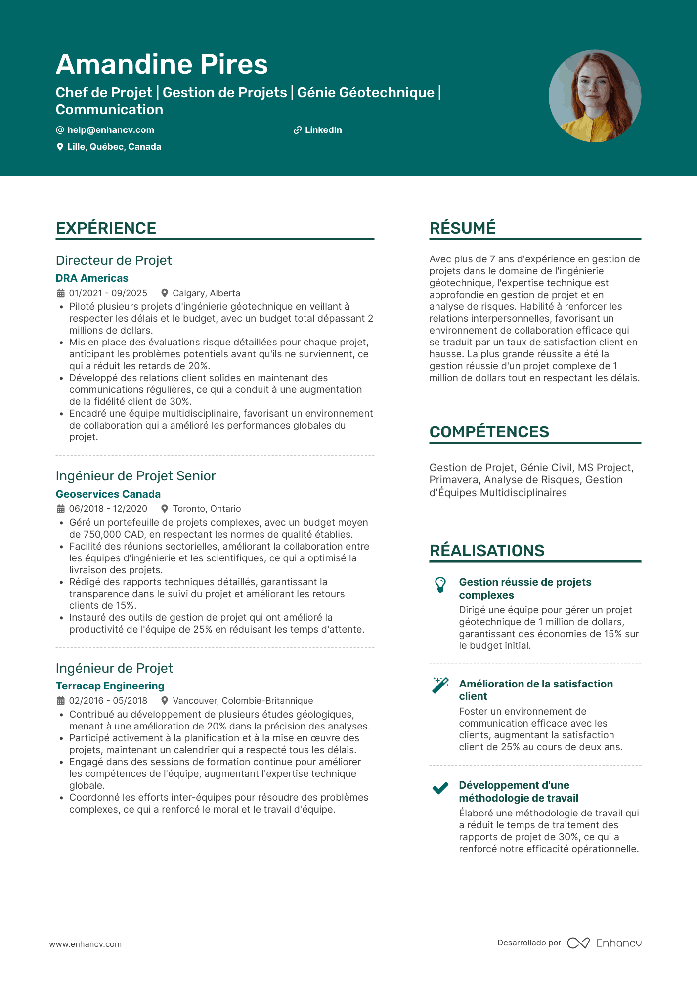 Généralement, ce CV se distingue par sa structure claire, concise et axée sur les compétences du candidat. Lorsqu’un recruteur canadien le parcourt, il doit y voir des résultats concrets d’expériences passées en rapport direct avec le poste.