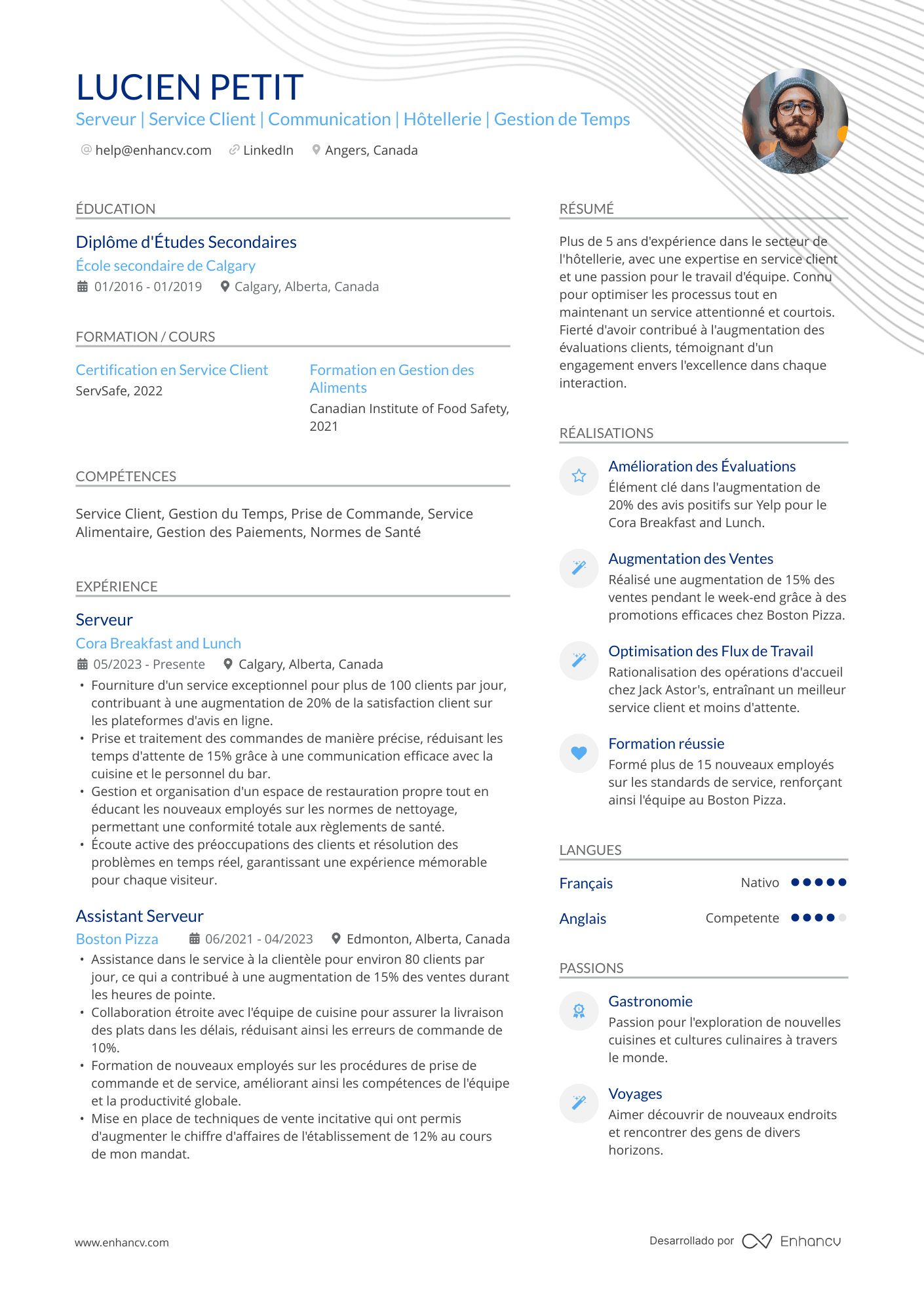 Avec Enhancv, vous avez l’assurance d’un CV professionnel en quelques minutes seulement !