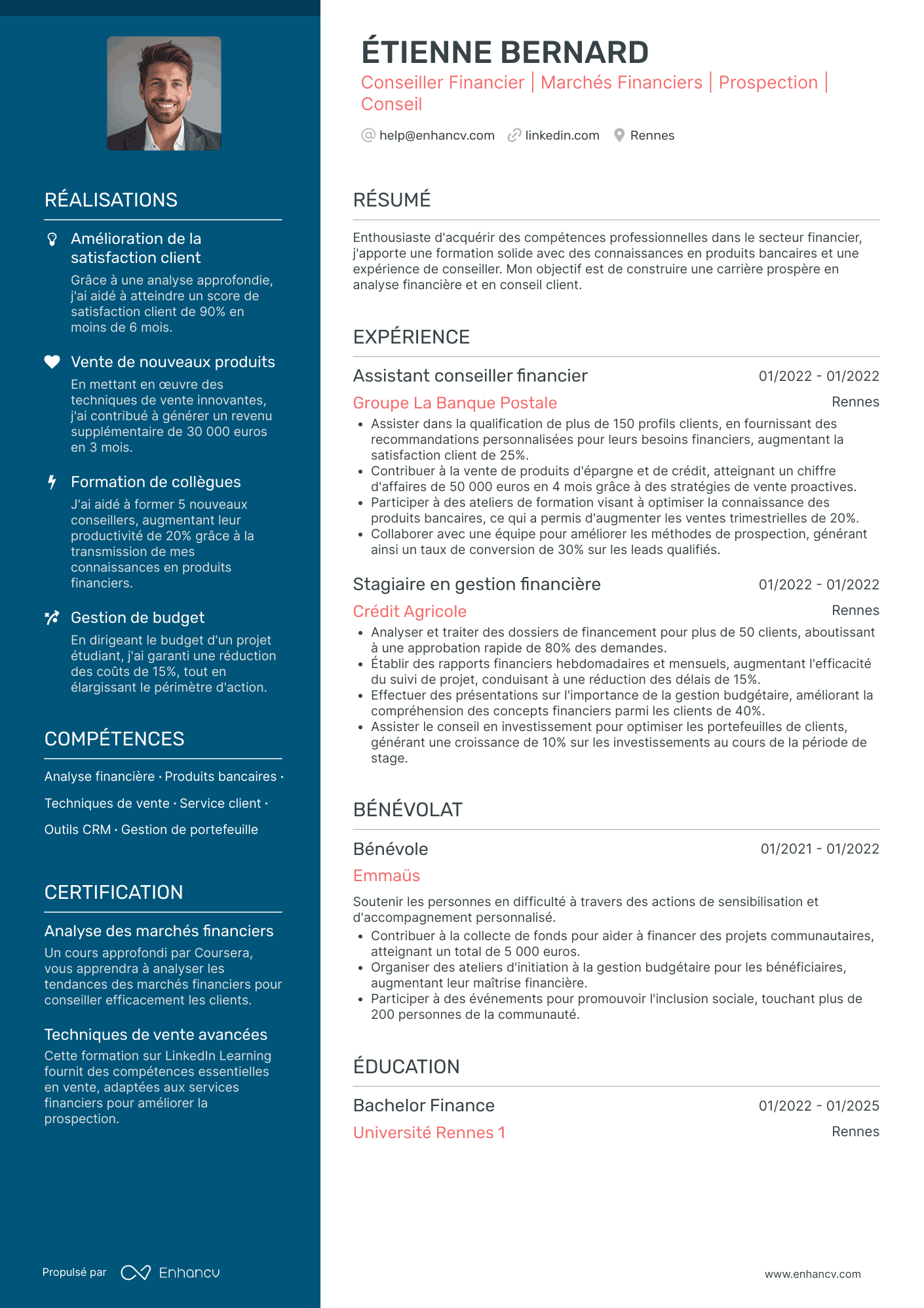 Enhancv est un outil de création de CV (du CV simple au CV moderne) particulièrement efficace et adapté au secteur bancaire.