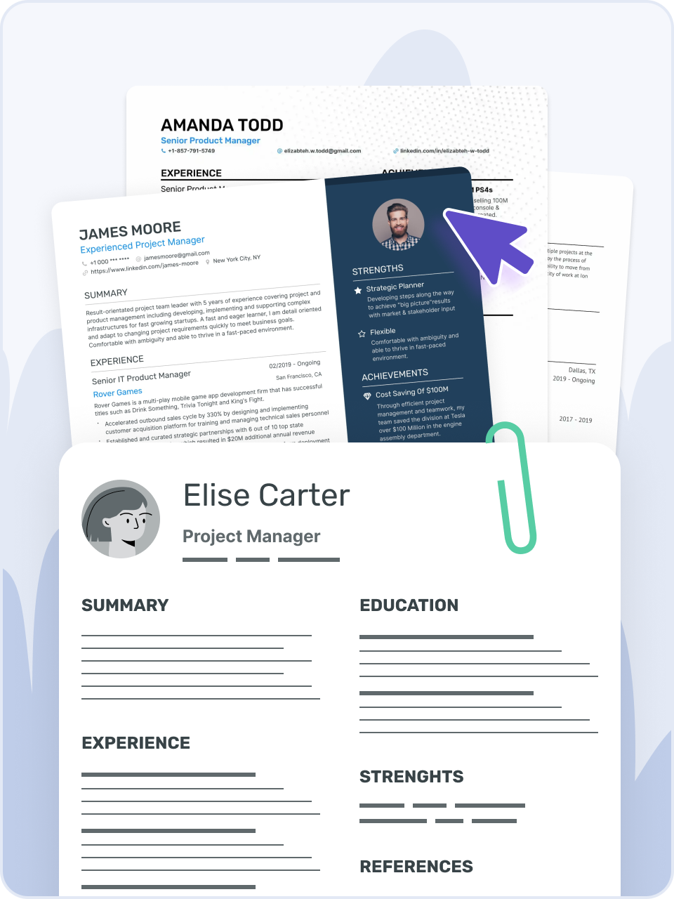 Easily edit your resume with Enhancv’s drag-and-drop Resume Builder. Choose from different templates, various backgrounds and sections.