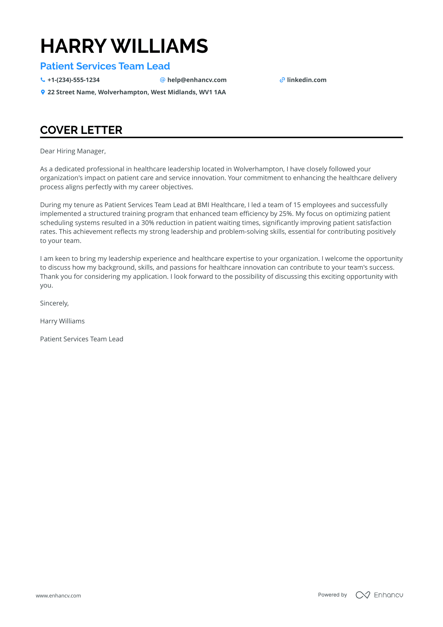 - Highlighting Achievements: The letter effectively details specific achievements such as reducing wait times by 20% and decreasing billing errors by 30%, showcasing tangible results and impact.