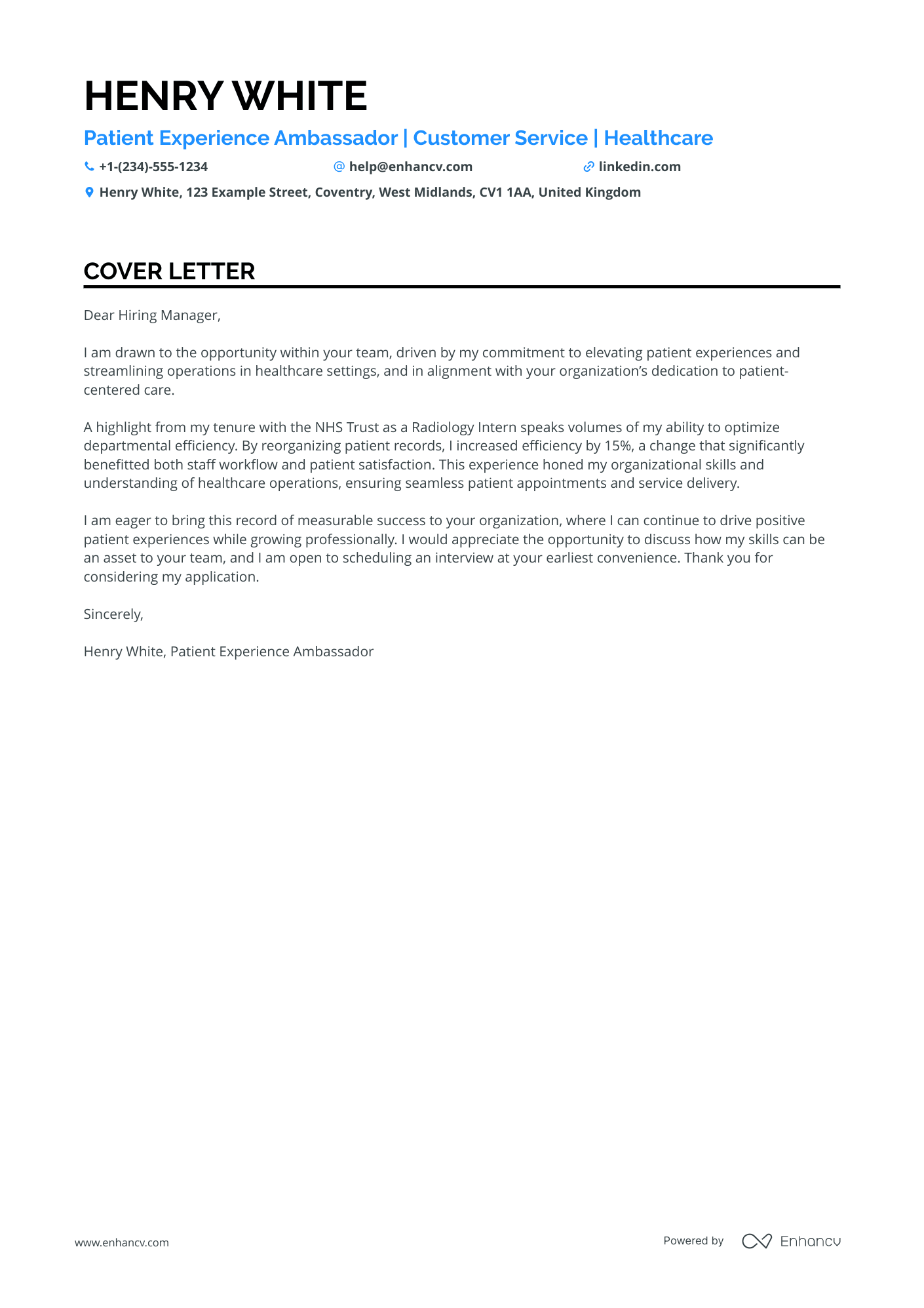 - PhD cover letter example