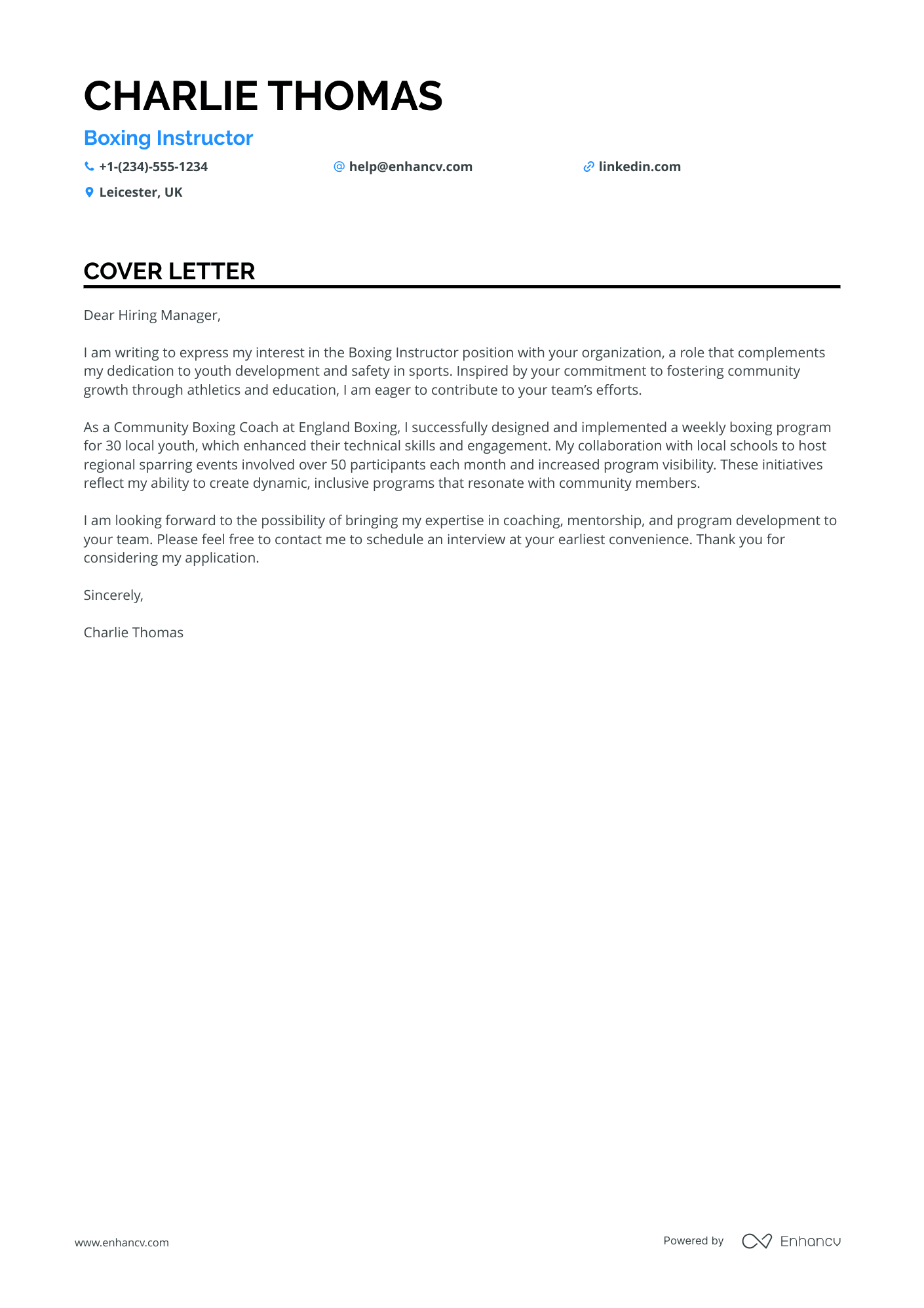 Upload your student ambassador resume to Enhancv's AI, which will quickly scan and prepare a job-winning cover letter for you.
